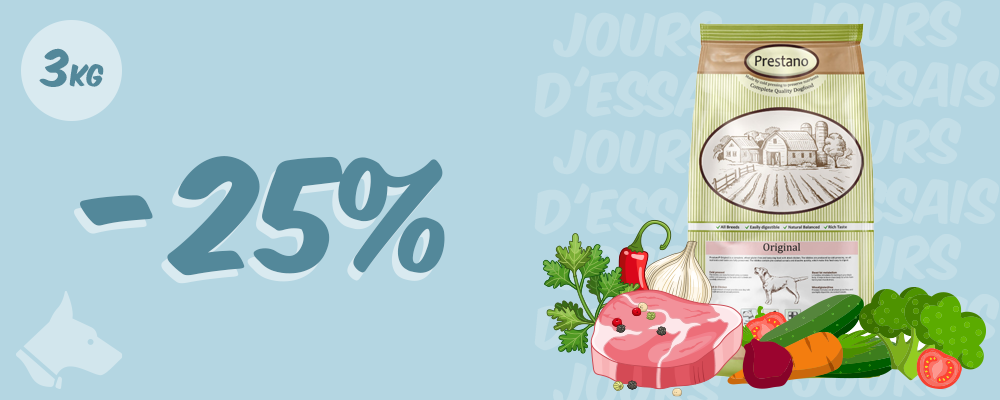 Économisez jusqu'à des centaines d'euros par an sur les croquettes pressées pour chiens ! Toutes les variantes de Prestano sont pressées à froid, riches en ingrédients de haute qualité, sans le prix élevé ! Avec des variantes adaptées à tous les chiens.